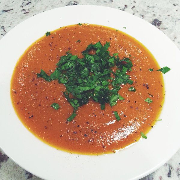 All the ingredients will cook harmoniously, blitzed to a creamy perfection and finished with fresh cilantro and cracked black pepper.